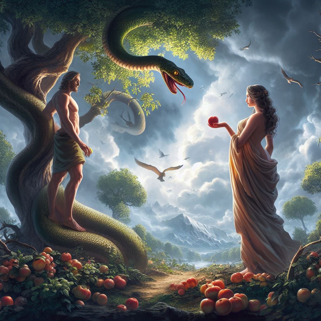 However, the Garden of Eden is also the setting for the story of the original sin, where Adam and Eve’s disobedience in eating the fruit from the tree of the knowledge of good and evil led to their expulsion from this idyllic setting. This act marked the introduction of human suffering and toil into the world. The narrative of the original sin is a fundamental element of Christian theology, highlighting the fallen nature of humanity and the subsequent need for redemption through Jesus Christ.