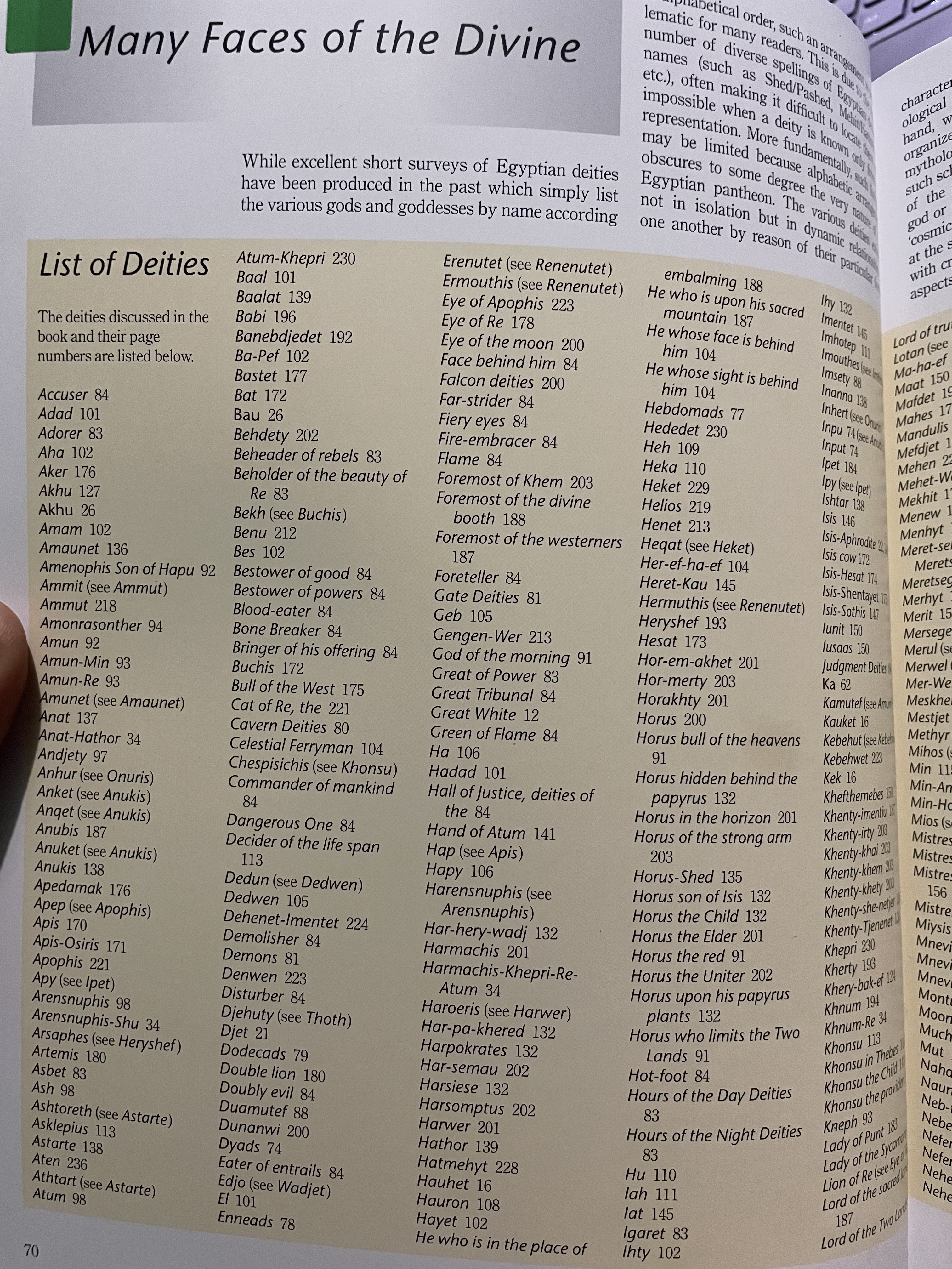 To keep this simple and short, I highly recommend reading The Complete Gods and Goddesses of Ancient Egypt by Richard H. Wilkinson. There’s so much helpful information, including the name of the gods and goddesses and even the periods. Then the list that’s on pg. 70 of the deities is an absolute gem because, on the following pages, you get a detailed description of those deities listed.