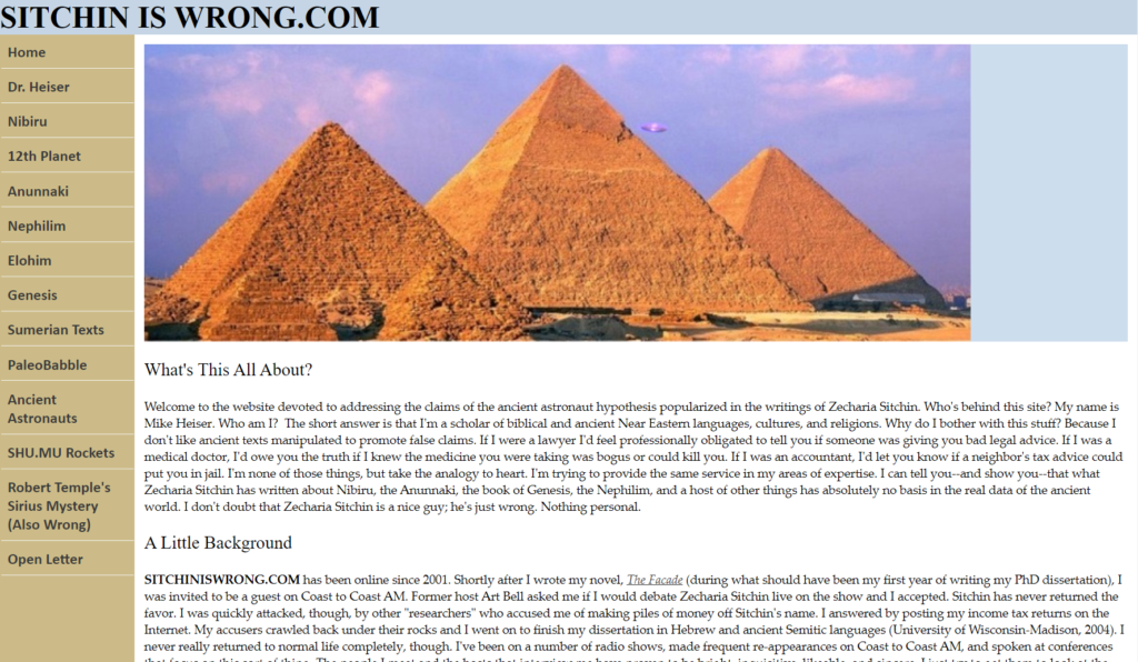 “Welcome to the website devoted to addressing the claims of the ancient astronaut hypothesis popularized in the writings of Zecharia Sitchin.”